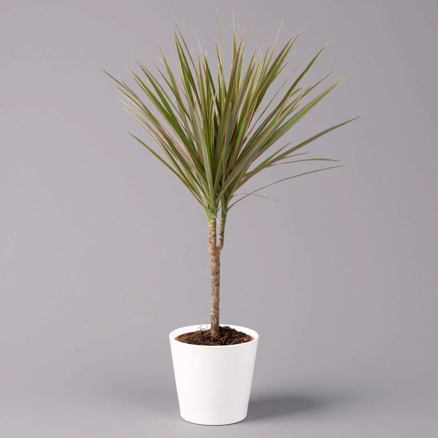 Er ist exotisch, auffällig gemustert und üppig geformt: Der Drachenbaum, auch Dracaena marginata ‚Bicolor‘ genannt. Diese Zimmerpflanze lässt sich an nahezu jeden Standort in Ihrer Wohnung oder im Büro aufstellen und schafft dadurch ein einzigartiges Ambiente. Nicht nur optisch wertet der Drachenbaum den Innenbereich auf, sondern filtert auch Schadstoffe aus der Luft. Fühlen Sie sich wie in der freien Natur und genießen Sie herrlich frische Luft! Die roten Streifen der schmalen Blätter sind zudem ein wahrer Hingucker. Nicht umsonst verdient diese Pflanze ihren Namen, denn das Muster erinnert an ein beeindruckendes Fabelwesen der chinesischen Kultur. Um diese Struktur zu erhalten, sollten Sie regelmäßig ein wenig Grünpflanzendünger zum Substrat geben. Tipp: Verfärben sich die Blätter und weisen gelbe Flecken auf, sollten Sie die Wasserzufuhr etwas reduzieren.