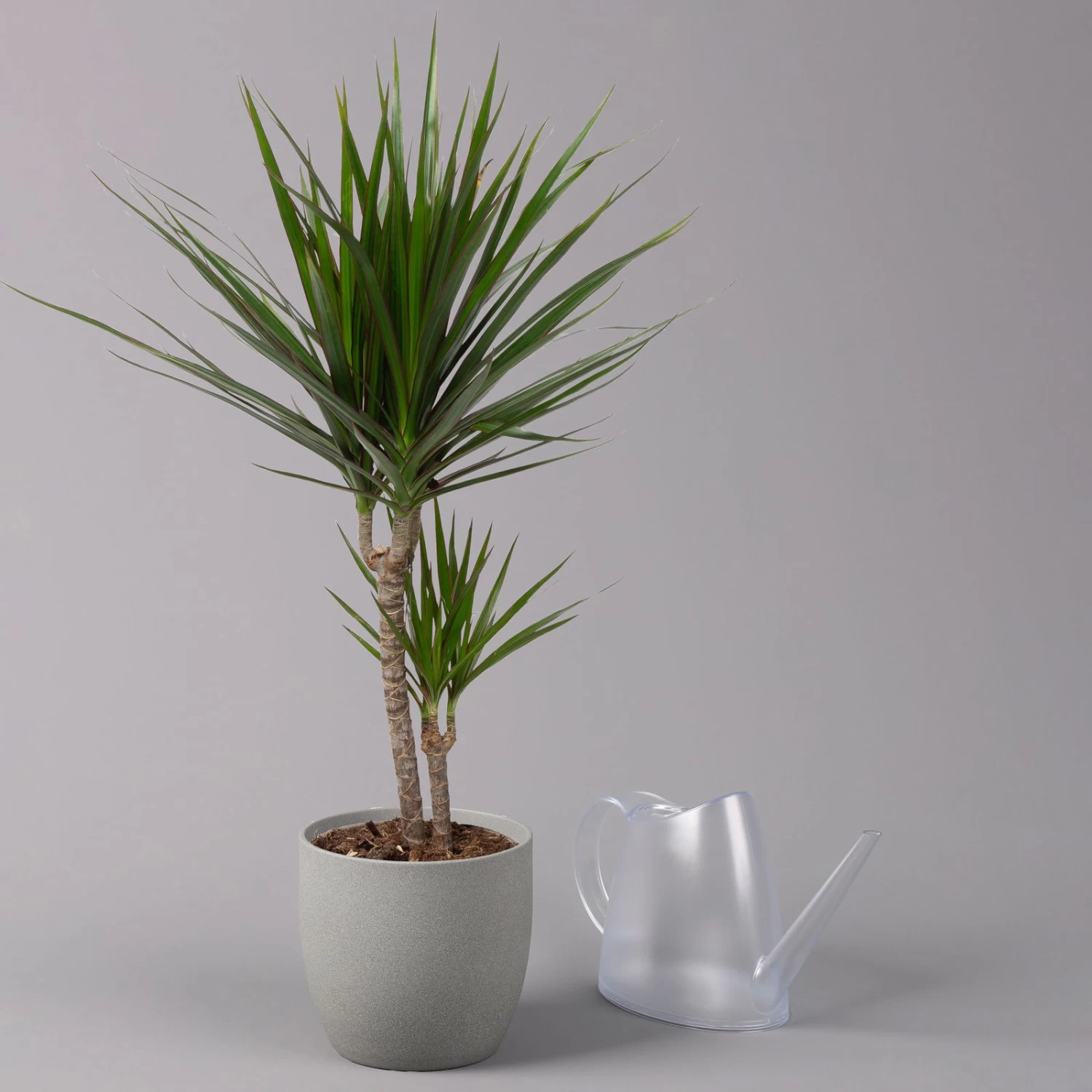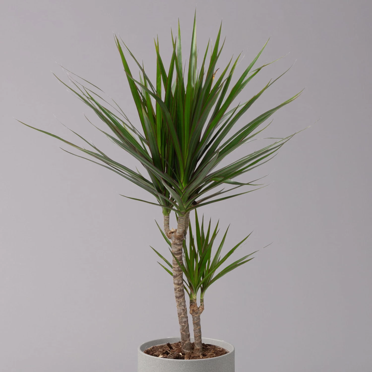Die Dracaena marginata setzt farbenfrohe Akzente und begeistert mit roten Streifen und auf den Blättern. Die optisch attraktive Pflanze vermag außerdem mit einer weiteren Eigenschaft zu punkten: Die Drachenbäume entziehen nämlich der Raumluft mehrere giftige Substanzen, darunter Benzole und Formaldehyde. Da diese Verbindungen nicht zuletzt von modernen elektronischen Geräten emittiert werden, ist der Drachenbaum zur Begrünung von einem Büro und dem Homeoffice bestens geeignet. Suchen Sie für Ihren Drachenbaum einen hellen Platz ohne direkte Sonneneinstrahlung aus und seien Sie sparsam beim Gießen. Das subtropische Gewächs mag es warm.