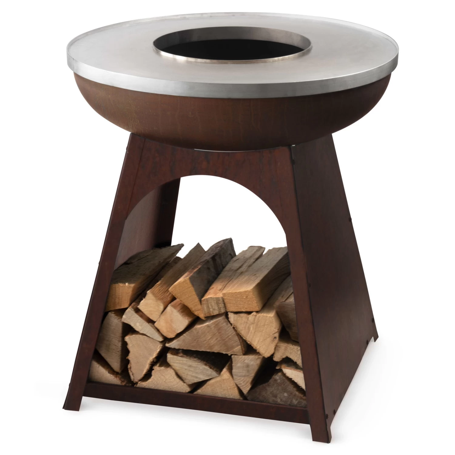 Einen verträumten Abend am Feuer verbringen oder leckeres Grillgut zubereiten? Mit der runden Feuerstelle TopUp geht beides, und das auf eine anspruchsvolle Art. Diese Feuerstelle ist aus dem trendigen Material Cortenstahl gefertigt und präsentiert sich in beliebter Rost-Optik. Für das Grillen steht Ihnen ein praktischer Ring aus Edelstahl zur Verfügung. Dank einer ausgefeilten Luftzirkulation verbrennt das Holz sehr sauber und Sie können sich über ein optimales Grillerlebnis freuen. Die Ablage für Holzscheite ist in der Feuerstelle TopUp bereits integriert, sodass Brennmaterial immer zu Genüge vorhanden ist. Auch wenn die Feuerstelle gerade nicht im Einsatz ist, profitieren Sie von einem modernen Blickfang auf Ihrer Terrasse oder im Garten. Die Feuerstelle ist witterungsbeständig und außerdem pflegeleicht.