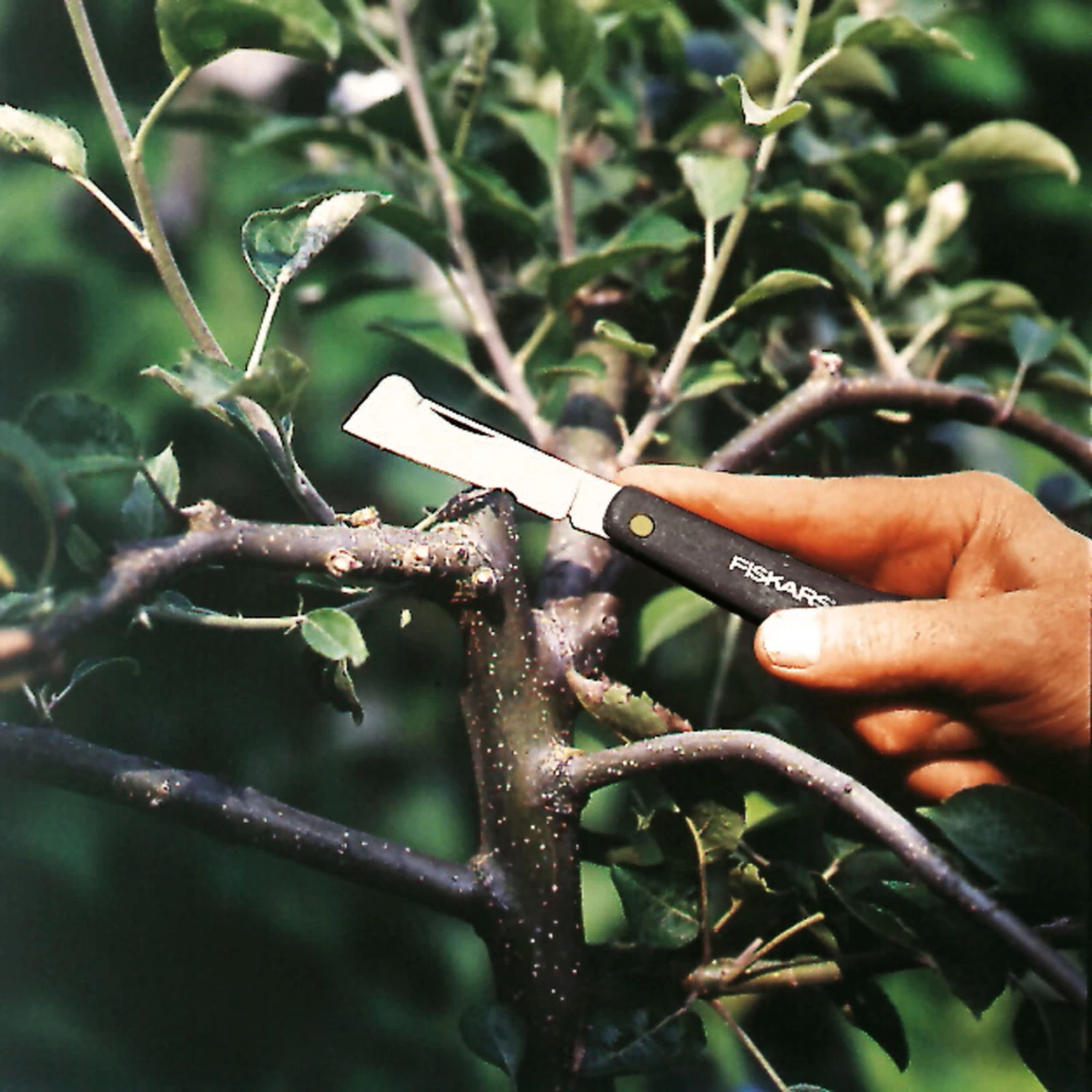 Das Okuliermesser von Fiskars eignet sich, wie sein Name es schon erahnen lässt, für diverse Okulierarbeiten. Mit dem 50 Gramm leichten Werkzeug lassen sich viele präzise Tätigkeiten durchführen. Die scharfe, gerade Klinge hat eine einseitig geschliffene Schneide und besteht aus hochwertigem, poliertem Stahl. Dieses Material verleiht der Klinge ihre Langlebigkeit und darüber hinaus die Korrosionsbeständigkeit. Außerdem hat der Stahl eine Rockwell-Härte von 58 HRC. Das Messer hat eine Gesamtlänge von 17 Zentimetern und ist zusammenklappbar. Dadurch passt es in jede Hosen- oder Jackentasche. Mit dieser Länge ist es das kleinste der Messer-Modelle. Der Löser befindet sich am Klingenrücken. Das Fiskars Okuliermesser wiegt 50 Gramm und eignet sich hervorragend zum Veredeln von Pflanzen. Mit ihm lassen sich zum Beispiel Obstbäume oder Rosen sehr gut bearbeiten, Stöcke anspitzen, und auch zum Abschälen der Rinde lässt sich das Werkzeug optimal verwenden. Das Siegel „Sicherheit Geprüft“ bestätigt, dass das Messer den Europäischen Sicherheitsnormen entspricht.