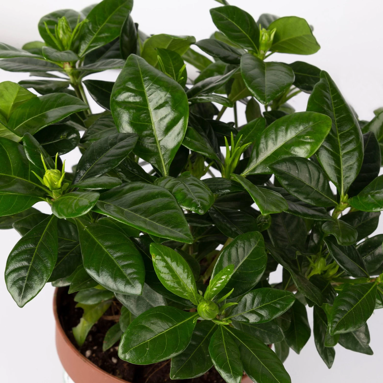 Die Gardenie (Gardenia jasminoides) besticht mit attraktiven Blüten und intensivem Duft. Die Blätter der Gardenie sind ledrig, dunkelgrün glänzend und stehen gegenständig an den Trieben. Die Pflanze wächst buschig bis strauchig und wird in ihrer Heimat Ostasien auch als Heckenpflanze kultiviert. Die Gardenie kann bis zu 50 cm hoch werden.