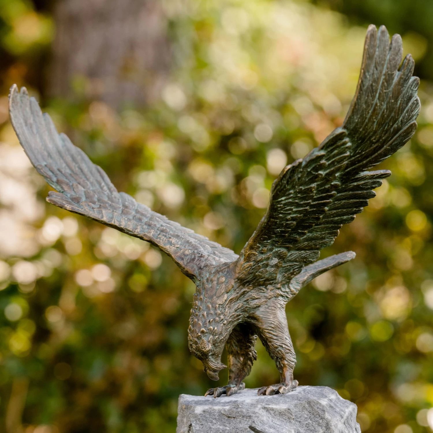 Diese Gartenskulptur aus edler Bronze avanciert in jedem Kontext zu einem außergewöhnlichen Highlight. Der Bartgeier ist ein starkes Symbol für Mut und Stolz, die plastische Darstellung beeindruckt mit effektvollen, von der Natur inspirierten Details. Jede Skulptur entsteht in aufwendiger Handarbeit und stellt daher ein Unikat dar.