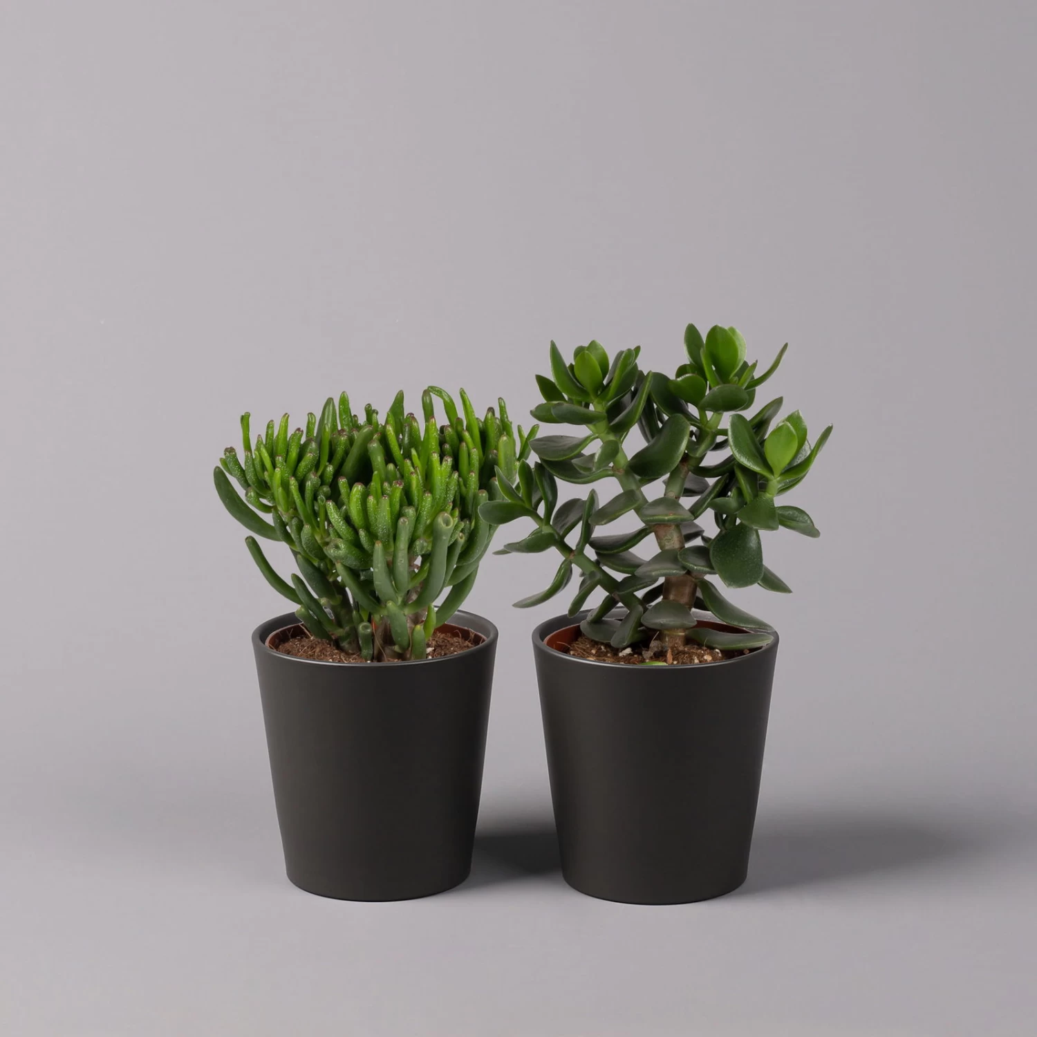 Geldbaum In Keramiktopf Anthrazit, Verschiedene Formen, Topf-Ø 12cm, 2er-Set