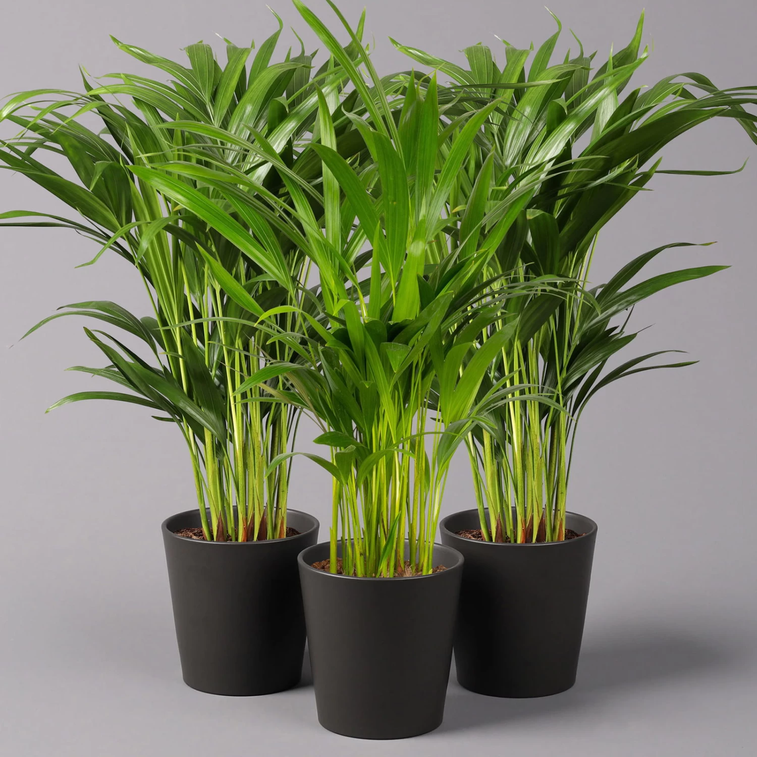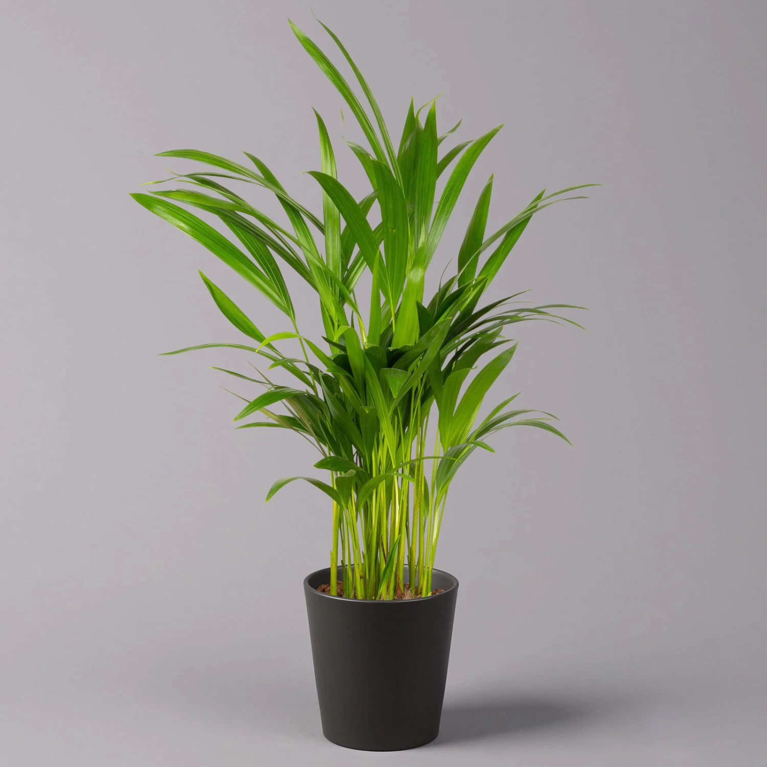 Die Goldfruchtpalme (Dypsis lutescens) ist ein anspruchsloses und dekoratives Palmengewächs von der afrikanischen Insel Madagaskar. Ihre Goldfruchtpalme fühlt sich an halbschattigen Standorten wohl und ist vor direkter Sonneneinstrahlung zu schützen. Pflegen Sie die Dypsis lutescens in den Innenräumen bei Temperaturen über 15 Grad Celsius. Für einen beheizten Wintergarten ist diese Zimmerpflanze genauso wie für Ihre Wohnküche oder Diele die richtige Wahl. Von April bis Oktober legt die Goldfruchtpalme einen hohen Wasserbedarf an den Tag, in der Winterzeit dürfen Sie die Wassergaben reduzieren. Am besten eignet sich zum Gießen lauwarmes und weiches Wasser, auch Sprühbäder tun Ihrer Zierpalme gut. Die Goldfruchtpalme verbessert nachweislich das Raumklima, indem sie der Luft mehrere Giftstoffe entzieht.