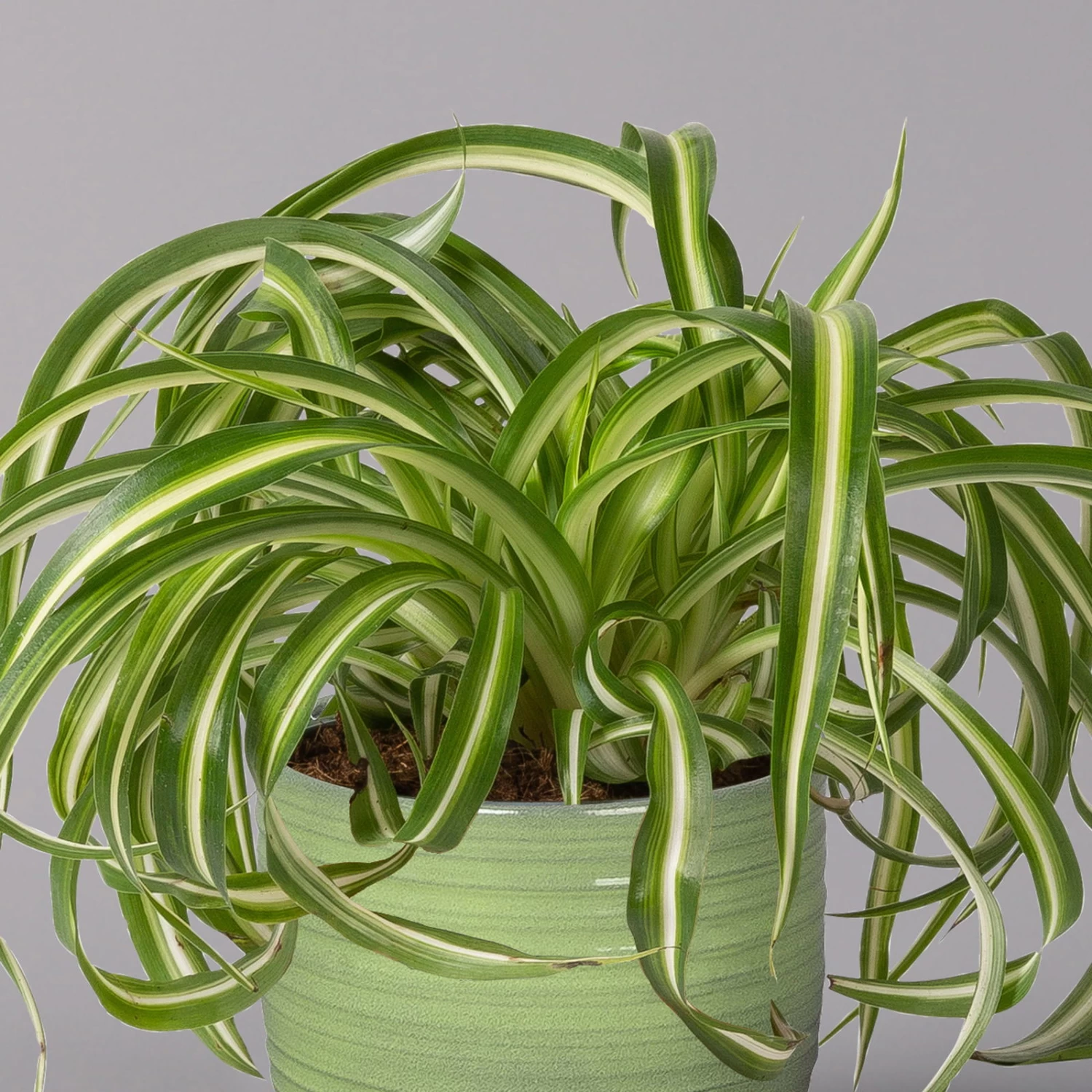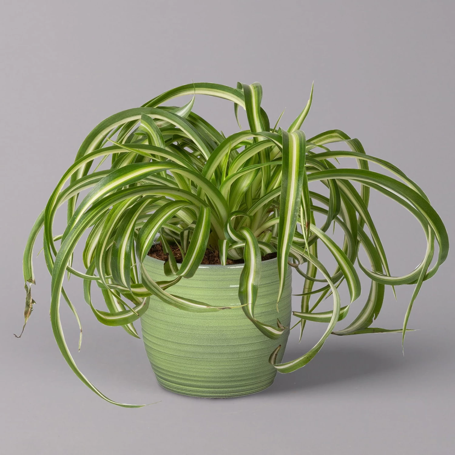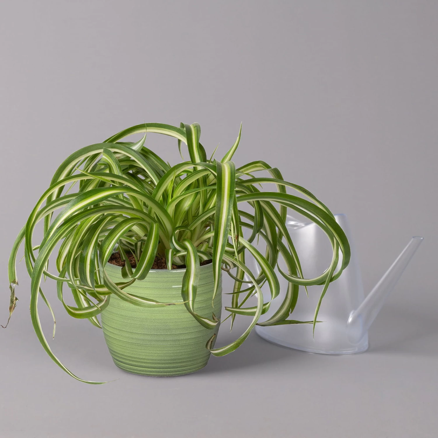 Die Grünlilie (Chlorophytum comosum) zählt zu den Klassikern unter den Zimmerpflanzen und war die Trendpflanze der 70er-Jahre. Seit geraumer Zeit feiert die Grünlilie als absolut pflegeleichte und robuste Grünpflanze ein Comeback und schmückt Wohn- und Badezimmer mit ihrem Retro-Charme. Charakteristisch sind die länglich-lanzettlichen Blätter, die je nach Sorte gelb bis grün gestreift sind. Die Blätter entwickeln sich überhängend aus einer Rosette heraus und formen einen dichten Blattschopf. Grünlilien erreichen bei guter Pflege eine Höhe von bis zu 40 cm.