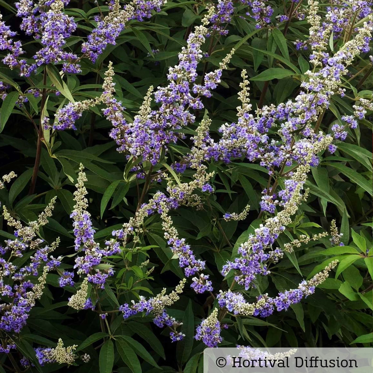 Der blaue Mönchspfeffer Vitex agnus-castus, auch Keuschbaum genannt, ist ein im Spätsommer reichlich blühender, mittelgroßer Strauch. Je nach Standort erreicht der blaue Mönchspfeffer Wuchshöhen von 100 bis zu 200 Zentimetern und wird rund 100 Zentimetern breit. Der Strauch begeistert im Juli und August durch seine wohlgeformten Blütenrispen. Zu dieser Jahreszeit verwandelt sich Vitex agnus-castus in einen wahren Insektenmagnet und lockt Bienen, Hummeln und andere Nützlinge in Ihren Garten. Sie erleben den blauen Mönchspfeffer in seiner vollen Pracht, wenn Sie den Strauch an einem vollsonnigen Standort pflanzen. Nährstoffreiche, frische Böden ohne Staunässe lassen optimale Bedingungen für das Gehölz entstehen. Als Solitär oder als ein Element von dekorativen Hecken macht Vitex agnus-castus immer eine gute Figur. Im Winter empfehlen wir, die Pflanzen mit etwas Tannenreisig als Winterschutz abzudecken.