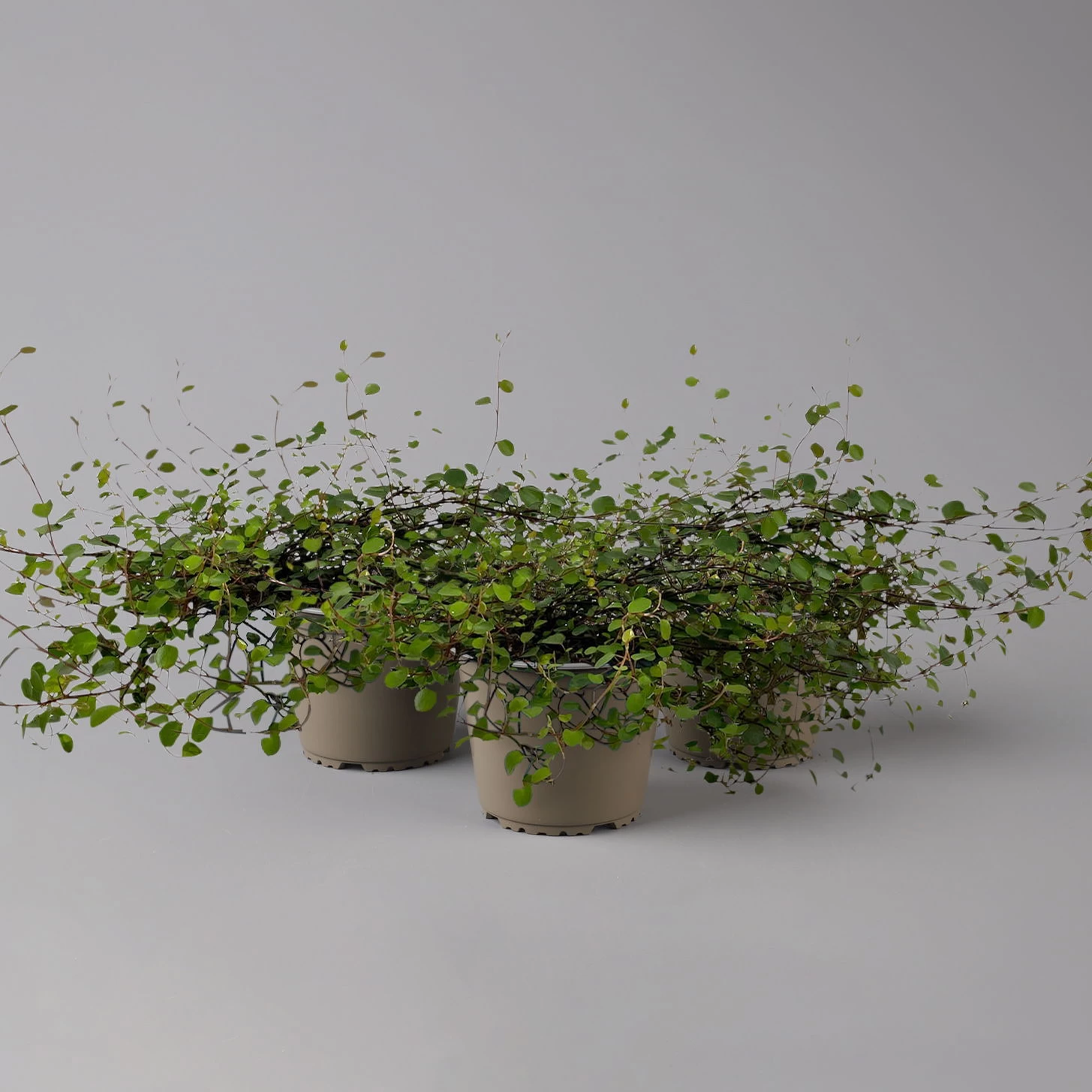 Die Mühlenbeckia complexa ist auch unter den Namen Drahtwein, Drahtstrauch sowie Knöterich bekannt. Der Drahtwein von unserer Eigenmarke Kölle’s Beste ist ein dekorativer Bodendecker zum Bepflanzen von Steingärten und Mauern, zur Grabpflege und zur Bepflanzung von Balkonkästen und Kübeln. Dabei erreicht der Knöterich Wuchshöhen von höchstens 10 Zentimetern und bildet dichte, grüne Teppiche mit filigranen weißlichen Blüten. Sie können den Drahtwein auf Wunsch als eine Ampelpflanze verwenden, auch in dieser Rolle wird die Mühlenbeckia dank ihren meterlangen Trieben brillieren. Der Drahtstrauch mag es hell oder halbschattig – auf jeden Fall keine direkte Sonneneinstrahlung. Durchlässige Böden ohne Staunässe und ausreichende Versorgung mit Wasser lassen optimale Wachstumsbedingungen für den Knöterich entstehen. Diese Zierpflanze ist nur bedingt winterhart.
