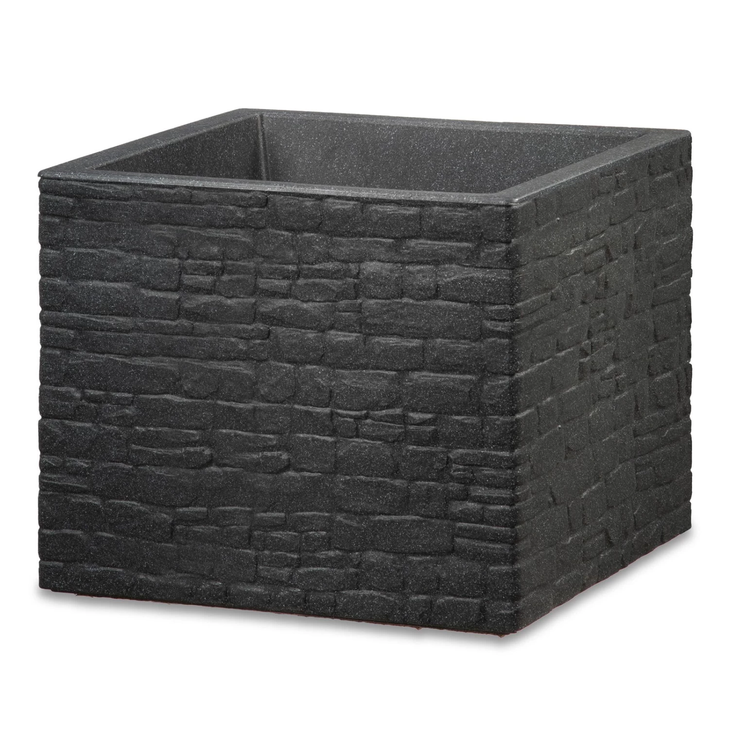 Pflanzgefäß ‚Muretto‘, Eckig, Stein, Schwarz, Kunststoff